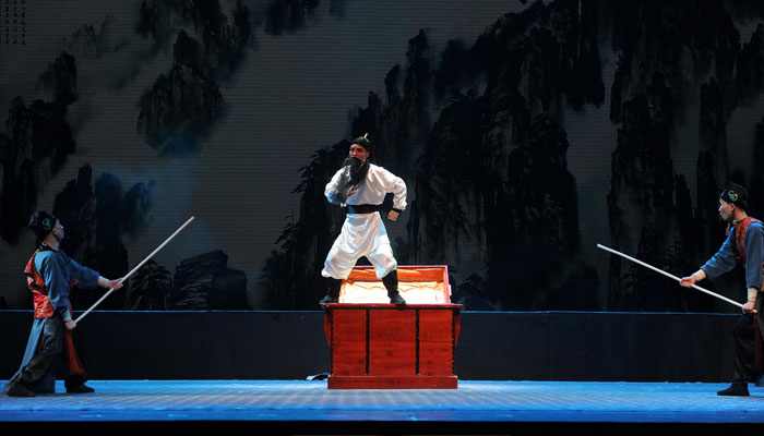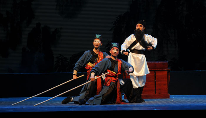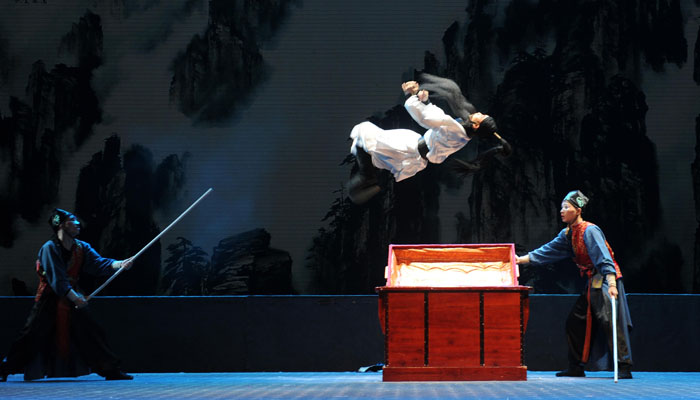 《打棍出箱》讲述的是北宋举子范仲禹,进京赴考,他的妻子被官僚恶霸葛登云抢去,范仲禹闯上门去索要,被葛登云用酒灌醉,打个半死,装入大箱之内,抛弃荒郊。两名衙役奉命寻找中了状元的范仲禹,途中发现木箱,以为内有财宝,用棍击开,没想到是个活人弹出。惊吓的衙役又举棍将他打进去。如此几进几出的“挺直”、“翻跌”,既刻划了人物的执着精神,又展示了戏曲的绝技。